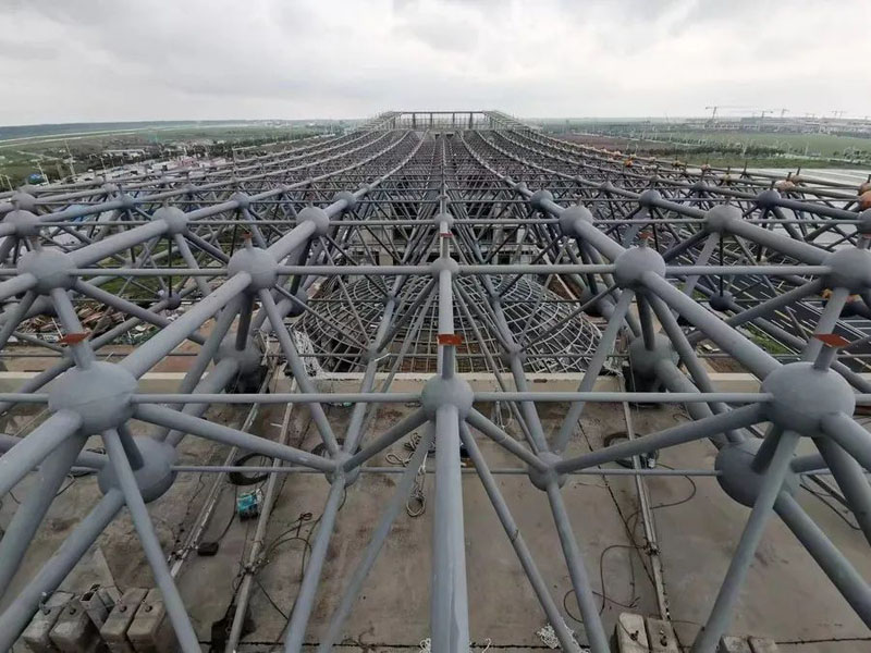 辦公樓-試驗(yàn)樓網(wǎng)架工程,網(wǎng)架長度 81.8 米,寬度 32.4 米,支座高度26米。工程特點(diǎn):本工程節(jié)點(diǎn)球?yàn)楹附忧蚝吐菟ㄇ蛳嘟Y(jié)合,含鋼量較高、跨度大,結(jié)合本工程項目特點(diǎn)及危大工程管理要求,特編制頂升專項安全方案,并通過專家組論證后實(shí)施,本方案施工質(zhì)量更有保障、安全系數(shù)高。歷經(jīng)55天的我公司順利交付得到業(yè)主及總包單位的一致好評。